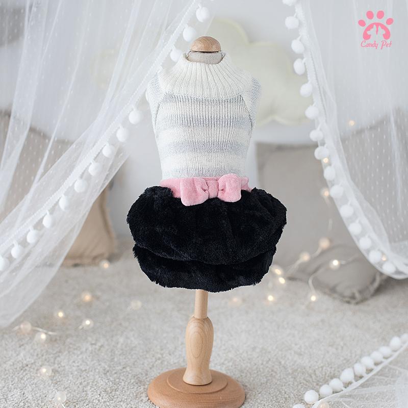 秋冬 ペット用リボン付きニットプリンセスワンピース