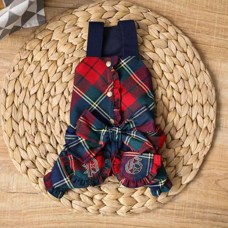 ペット用チェック柄サロペット