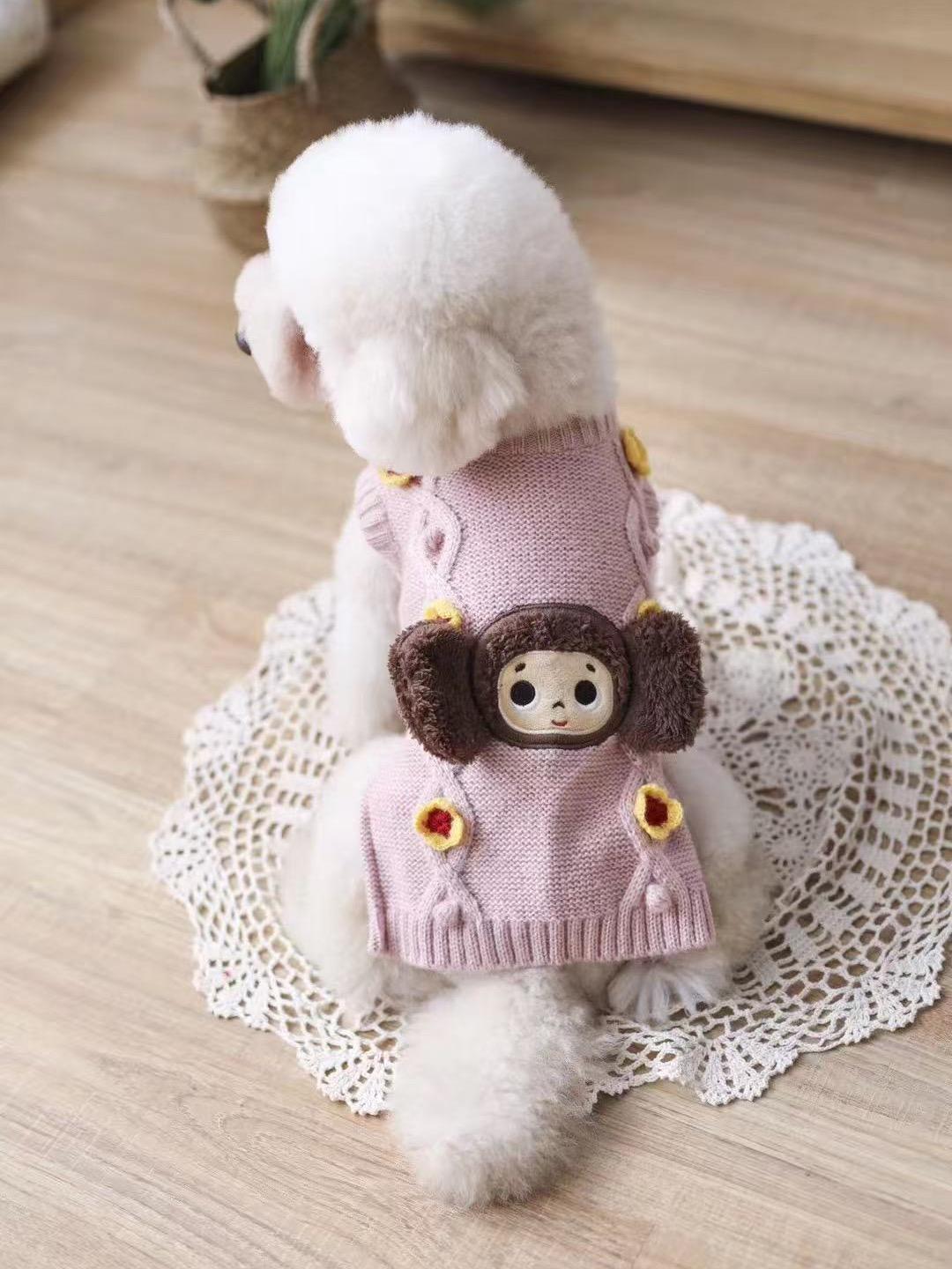 新作 ペット用ビッグイヤーモンキー柄セーター