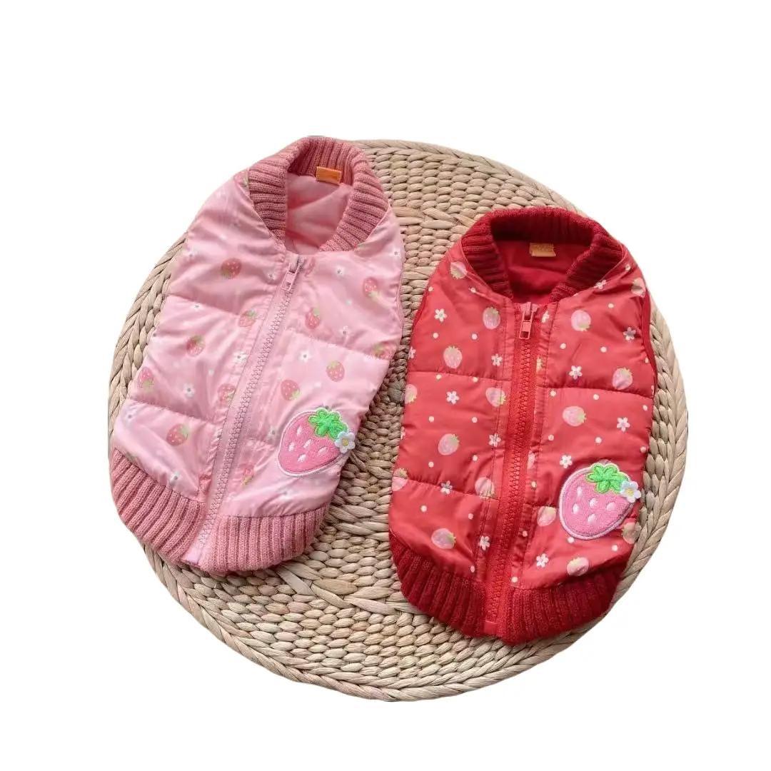 秋冬 新作 ペット用いちご柄ジッパーコットンジャケット