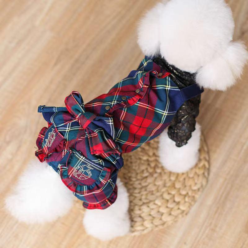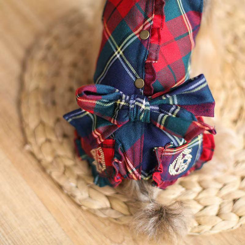 ペット用チェック柄サロペット