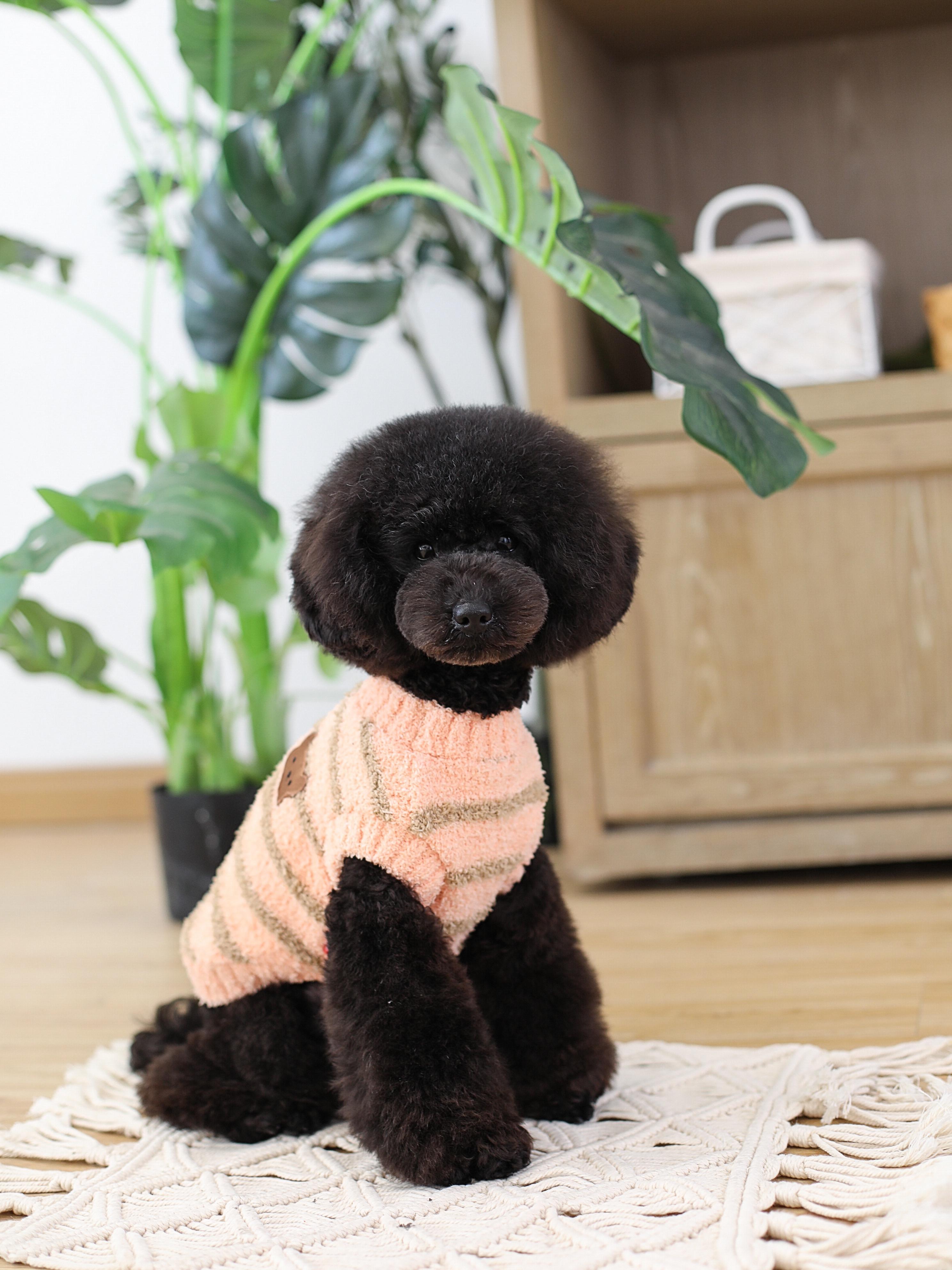 ペット用くまシェニール3色ボーダーベスト