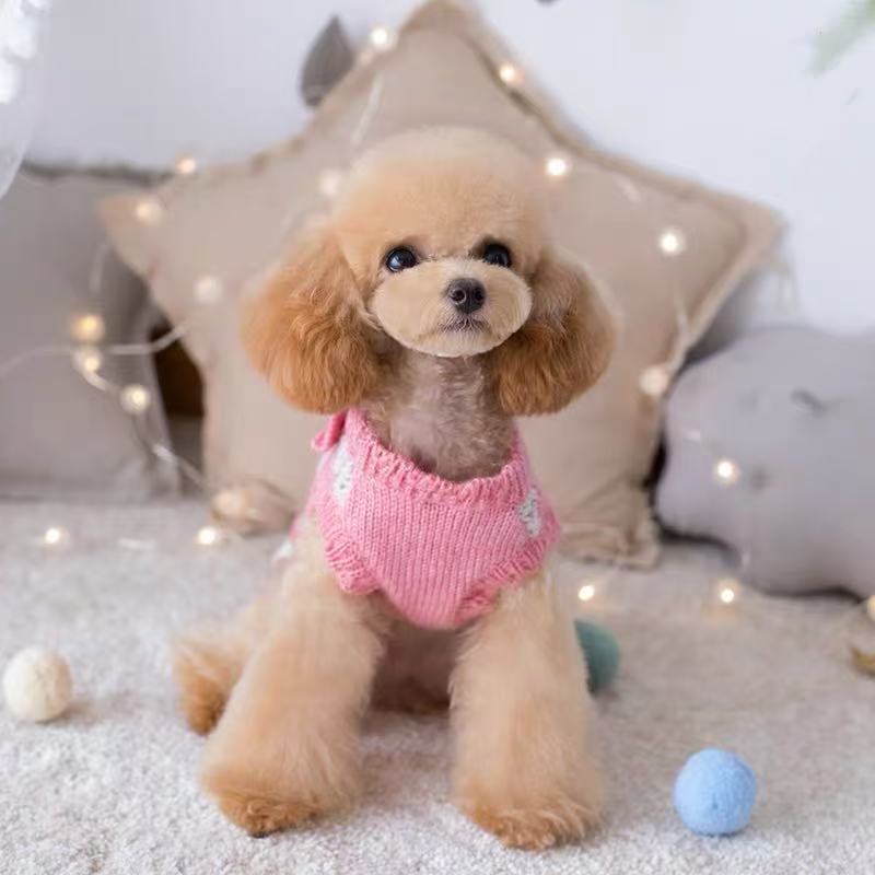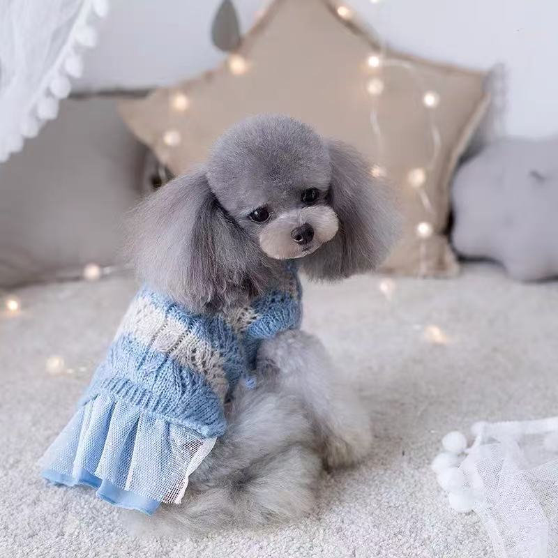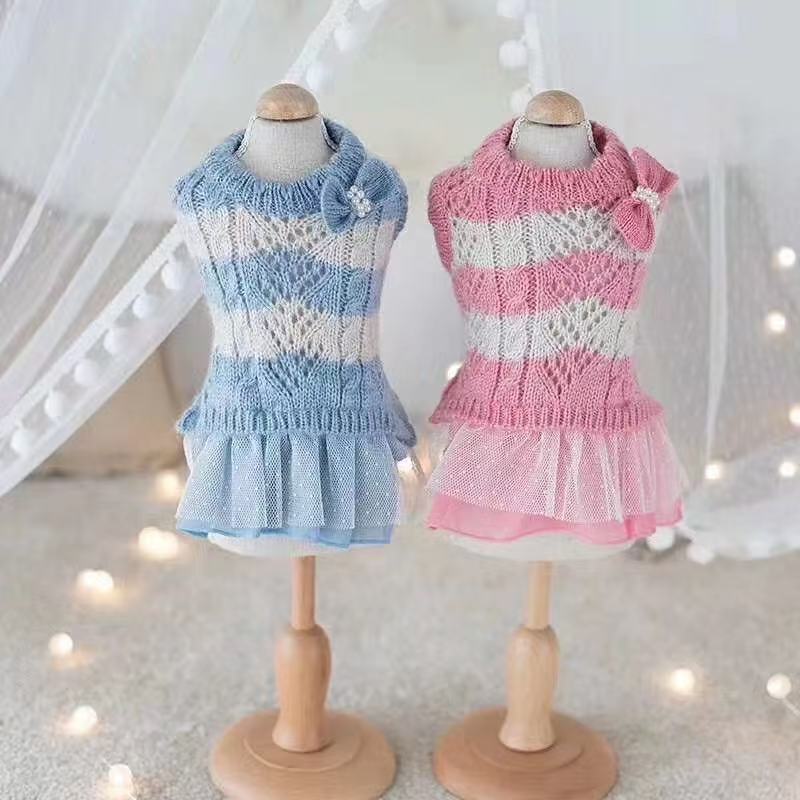 秋冬 クリアランス ペット用リボン付きツートンレースニットセーター