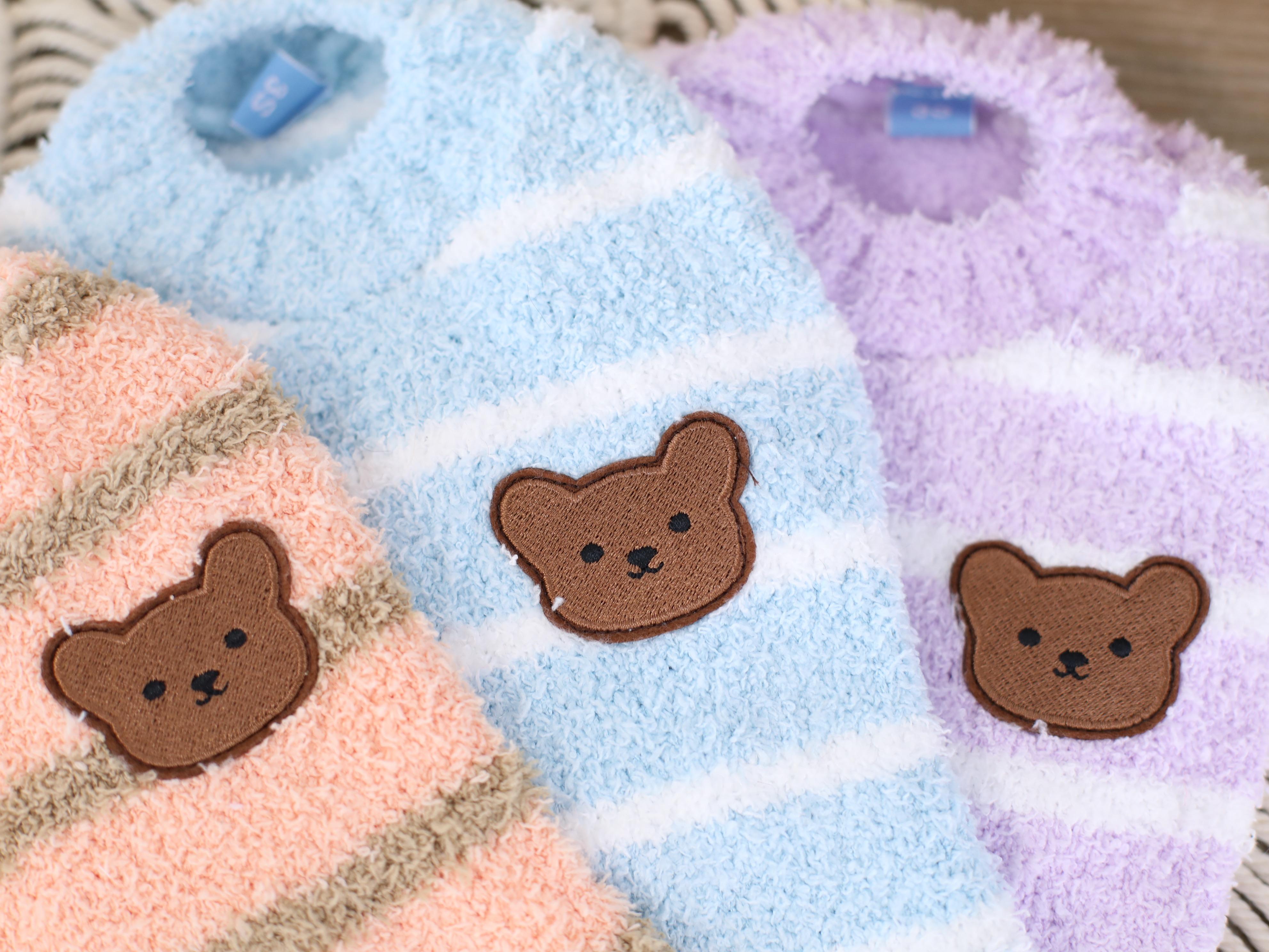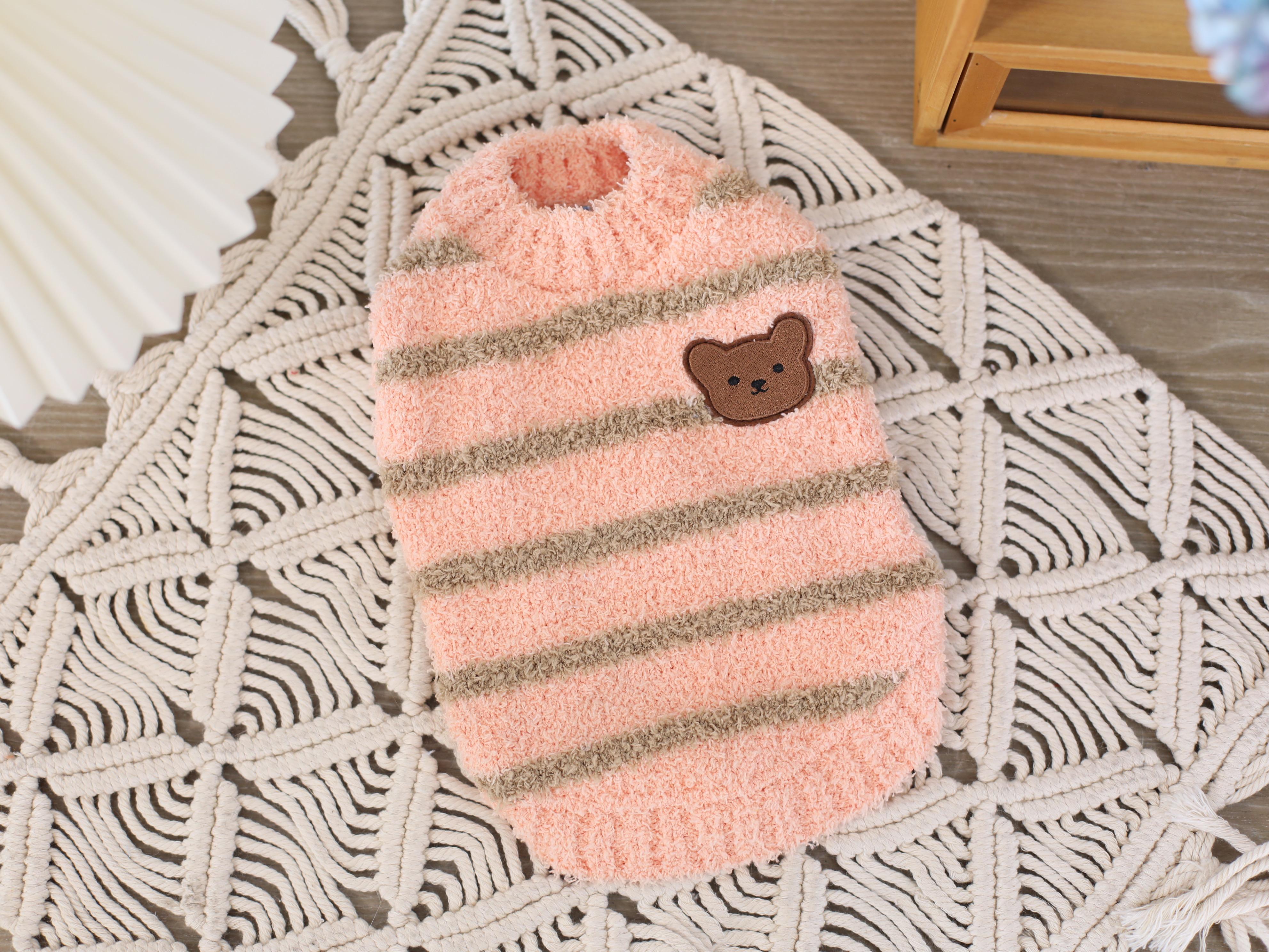 ペット用くまシェニール3色ボーダーベスト